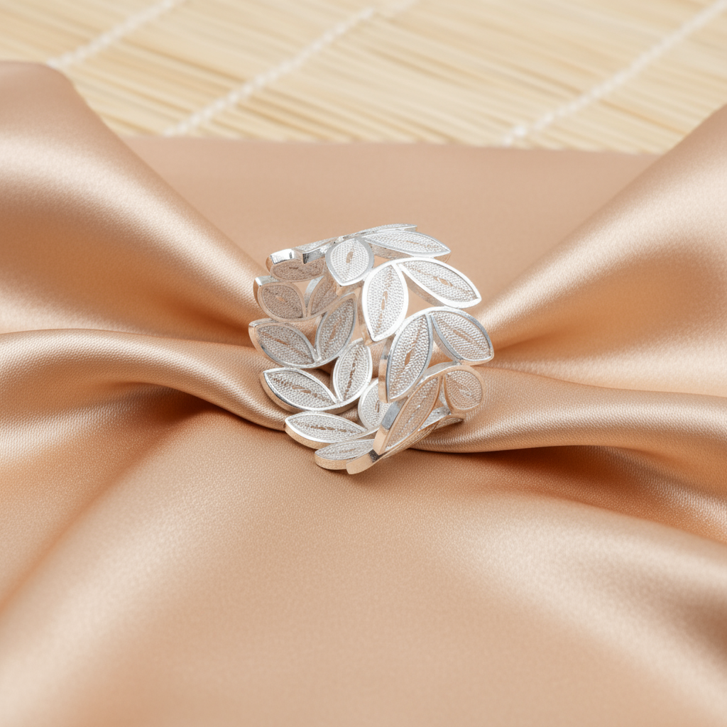 Elaborado en FILIGRANA MOMPOSINA, un arte ancestral que se ha transmitido de generación en generación en la histórica ciudad de Mompox. Meticulosamente tejido con hilos de plata. Nuestros Anillos cuentan una historia de dedicación y maestría en la artesanía colombiana.