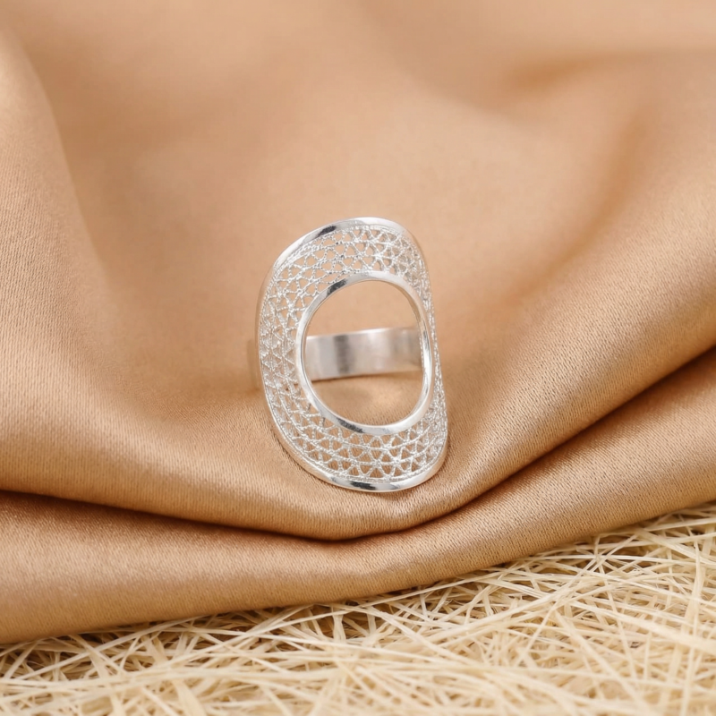 Elaborado en FILIGRANA MOMPOSINA, un arte ancestral que se ha transmitido de generación en generación en la histórica ciudad de Mompox. Meticulosamente tejido con hilos de plata. Nuestros Anillos cuentan una historia de dedicación y maestría en la artesanía colombiana.