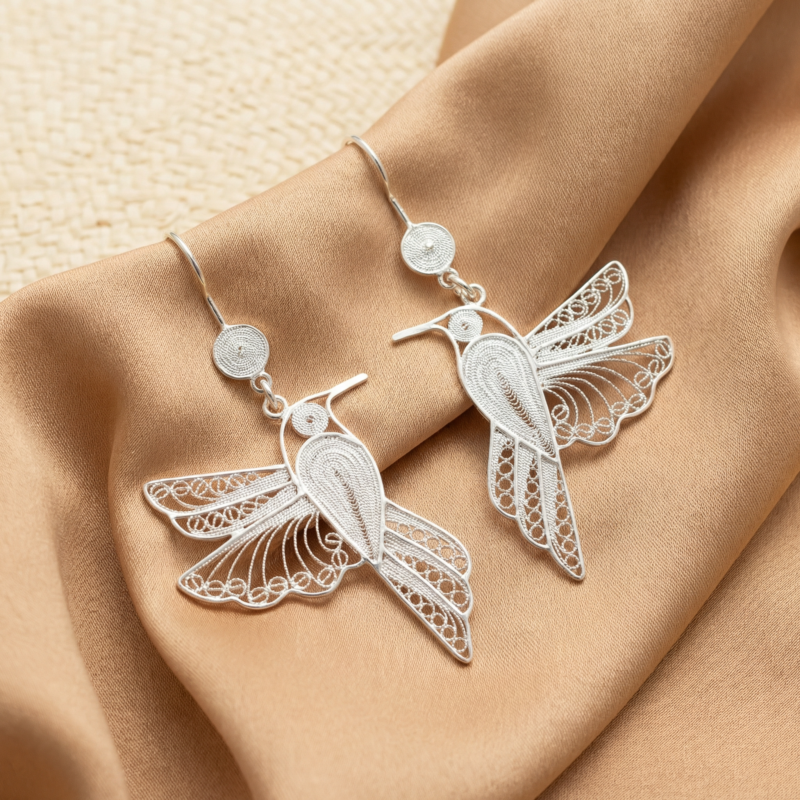 Elaborado en FILIGRANA MOMPOSINA, nuestros aretes son una expresión de la rica herencia cultural de Colombia. Cada Arete, meticulosamente tejido con hilos de plata, es un símbolo de la habilidad y la dedicación de los artesanos de Mompox. Llevar nuestros aretes en filigrana momposina es llevar consigo un pedazo de historia y tradición.