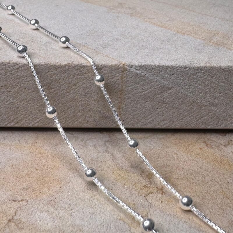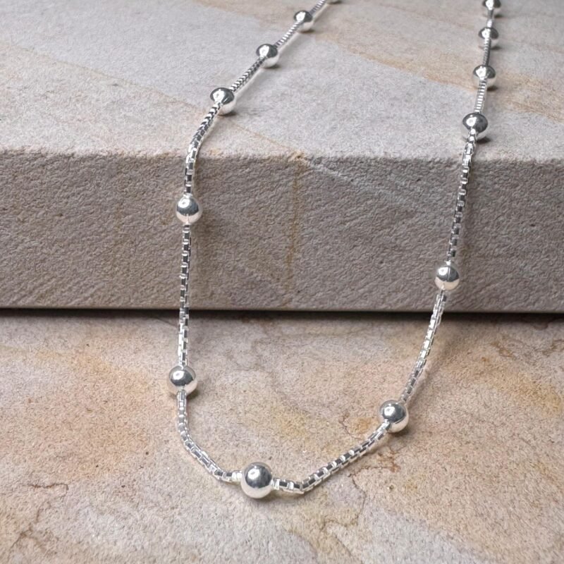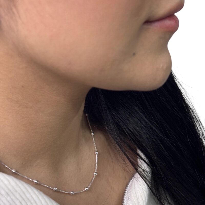 Cadena en plata, diseño con bolas en plata pequeñas, fabricado en plata ley 925.