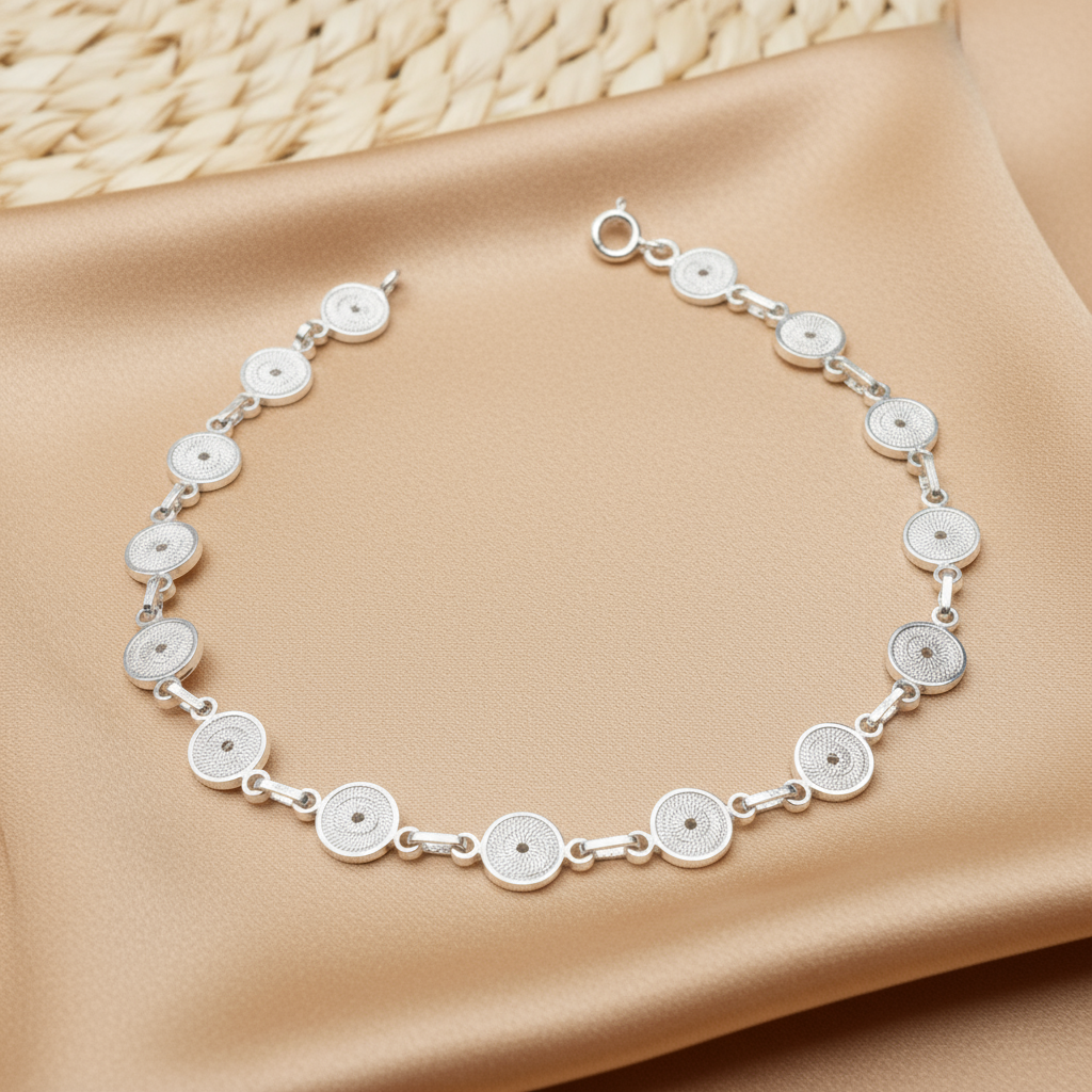 Elaborada en FILIGRANA MOMPOSINA, nuestras pulseras son un tesoro artesanal que encapsula la esencia de la tradición colombiana. Cada pulsera, meticulosamente elaborada con finos hilos de plata, es un testimonio de la habilidad y la pasión de los artesanos de Mompox. Llevar nuestras pulseras en Filigrana Momposina es llevar consigo un símbolo de elegancia y herencia cultural.
