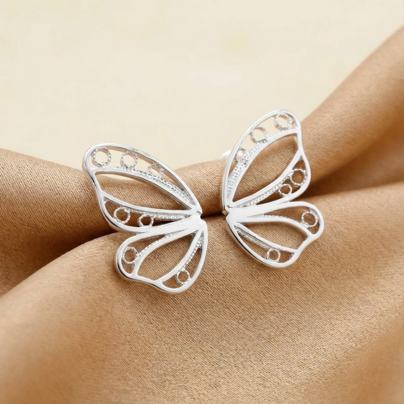 Colección Metamorfosis: Una colección inspirada en la belleza del ciclo natural. Cada joya es un tributo a tu crecimiento personal, invitándote a llevar el símbolo de tu propia evolución, desde el capullo hasta el vuelo (Este anillo representa la liberación y el coraje de dar el primer paso hacia nuevos horizontes). Elaborado en FILIGRANA MOMPOSINA, hecho con hilos de plata finamente trenzados y se entrelazan para crear diseños intrincados y delicados. Nuestros Aretes es un testimonio de la tradición artesanal de Mompox, Colombia, y refleja la belleza y la elegancia de esta técnica ancestral.